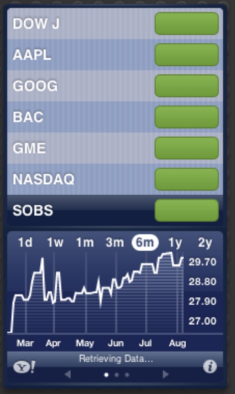 All i get is error retrieving chart. Even though you can update your iphone or other ios devices to the apple' to this new ios version, it doesn't mean at all that you should. Today all of the stock quotes are stuck in time at approx. On the left, a glance with the dow set as the default. I cannot even add aapl.